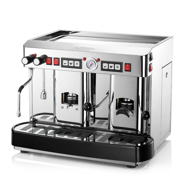 È una macchina da caffè per bar e ristoranti con consumi ridotti, professionale, a cialda (da 7 g), 2 gruppi indipendenti con scambiatori senza accumulo.