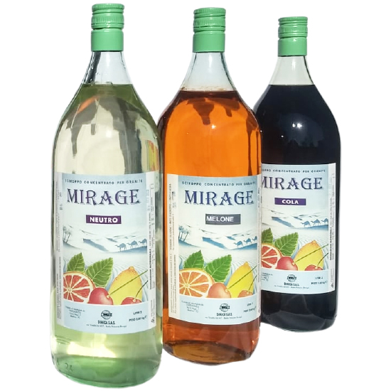 Com’è noto la granita è ottenuta ghiacciando una miscela di acqua, zucchero ed aromi; con questo sistema siamo riusciti a scindere la parte aromatica dal resto del composto ottenendo così due prodotti: base neutra (zuccherata) ed aromi Mirage (non zuccherati).